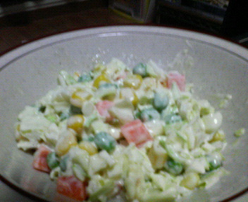ほんとのコールスローとは違うかも知れないけど、うちではこれがコールスローで通っています。 「ほぉら、コールスローだよ~♪」と信じ込ませて出します。 作り方は超簡単。 1.キャベツを粗めのみじん切りにする。 2.ミックスベジタブル投入。 3.塩コショウ、マヨネーズで味付け。 これだけです。 あと一品欲しいなぁ、というときは作ります。 キャベツがいっぱいある時も。 私はミックスベジタブル使っちゃうけど、野菜がちょっと残ってる時とかにもいいかもね。 うちは漬物一家なので、 野菜がちょっと残ってる → 漬けちゃう ![]() になるので、コールスローになることはありませんが。 (ほぼ毎日漬物食べる。浅漬けだけど。) 今日は昨日千切りにして余ったキャベツがあるので、作ろうかと思ったけど、よんよんがチヂミに使ってしまった..。 よんよん特製チヂミ、今度載せます。 |